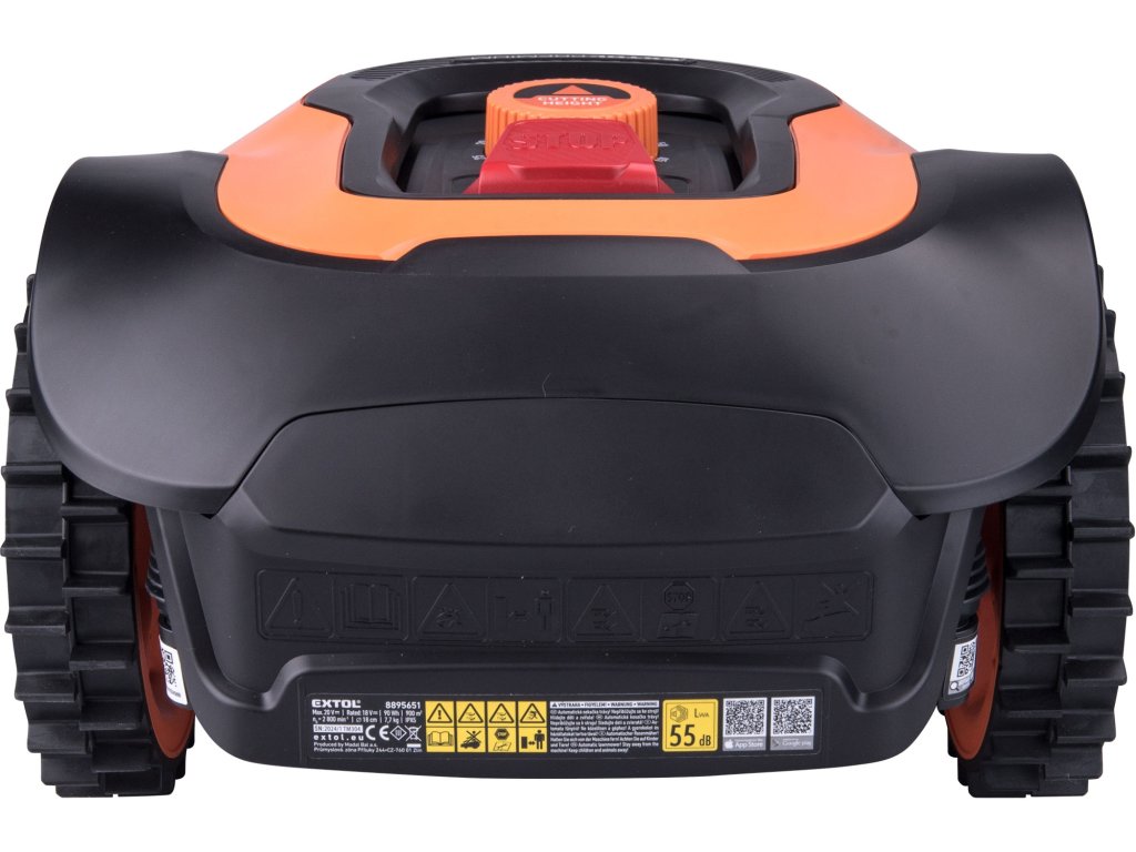 EXTOL PREMIUM 20V robotická sekačka je akumulátorový stroj určený pro bezobslužnou údržbu travnatých ploch o maximální velikosti 600 m². Po instalaci nabíjecí základny a vymezení sekací plochy dodaným kabelem provádí automatické sekání trávníku podle přednastaveného harmonogramu. Uživatel může čas a režim sekání upravovat pomocí mobilní aplikace kompatibilní s Android a iOS nebo přímo na ovládacím panelu sekačky.