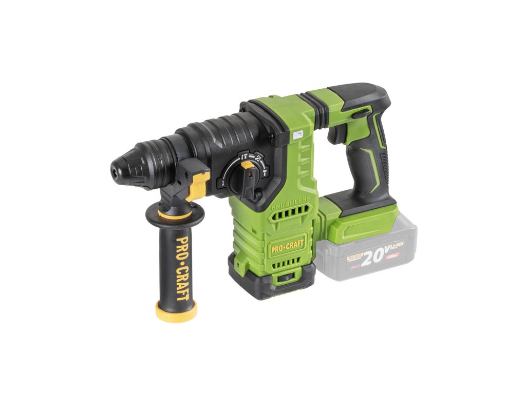 Kombinované AKU kladivo Procraft PHA30bb s upínáním SDS Plus je určeno k vrtání a lehkým bouracím pracím. Jako příslušenství lze použít SDS Plus příklepové vrtáky do betonu, ploché - špičaté nebo tvarované sekáče na stavební materiály, hadovité (spirálové) vrtáky a dláta do dřeva.