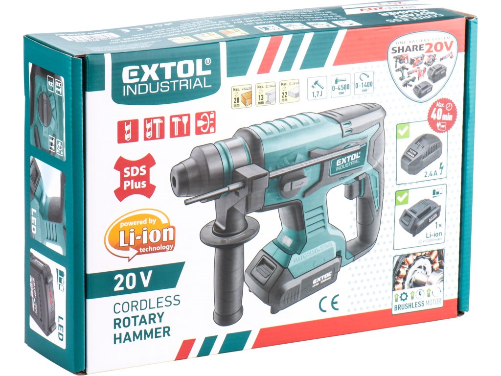Aku vrtací kladivo SDS-Plus EXTOL INDUSTRIAL 8791818