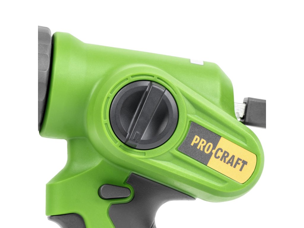 Baterie a nabíječka nejsou součástí balení. Pistole je kompatibilní s univerzálními 20V bateriemi Procraft, vhodnými pro celou řadu nástrojů této značky.