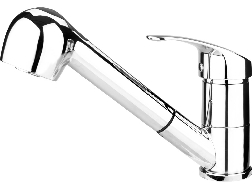 - Výsuvné rameno (teleskopické) – ideální pro větší dřezy nebo hrnce