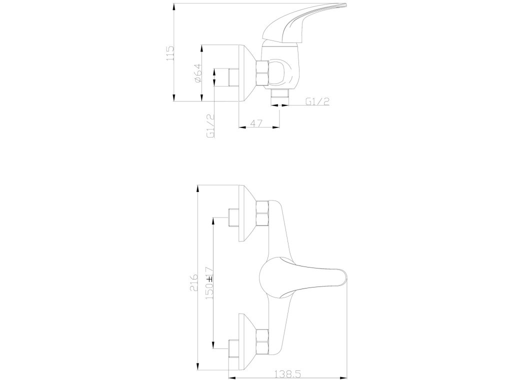 baterie sprchová, 150mm, 35mm, chrom
