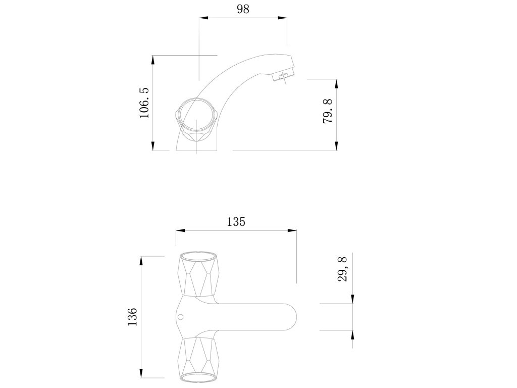 baterie umyvadlová stojánková, pevné ramínko 12cm, keramický ventil, chrom
