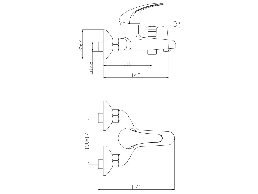 baterie vanová, 100mm, ram. 9cm, 35mm, chrom