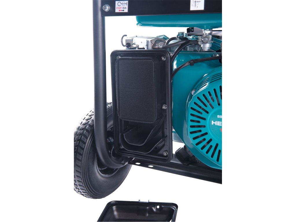 - Dlouhá provozní doba: Nádrž na 25 litrů benzínu v kombinaci s úsporným motorem zajišťuje až 13 hodin energie bez doplňování.