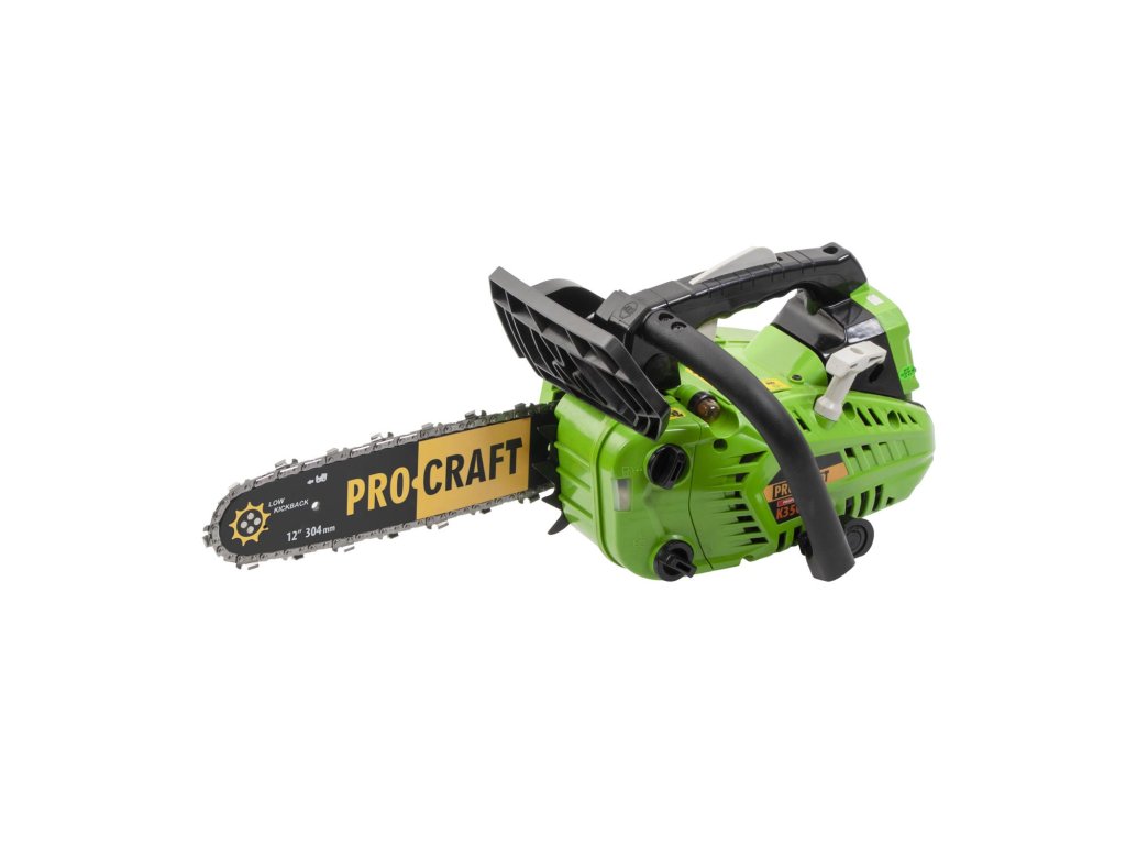 Benzínová řetězová pila Procraft K350S je určena ke kácení stromů, zpracování palivového dřeva, prořezávání větví. Silný benzínový motor s příkonem 850W za minutu zaručuje dlouhou bezporuchovou práci. Automatický systém mazání řetězu a kvalitní lišta zvyšují spolehlivost stroje. Součástí balení: míchací nádobka, nářadí, vodící lišta, řetěz, pilníky na pilové řetězy. Balení karton.