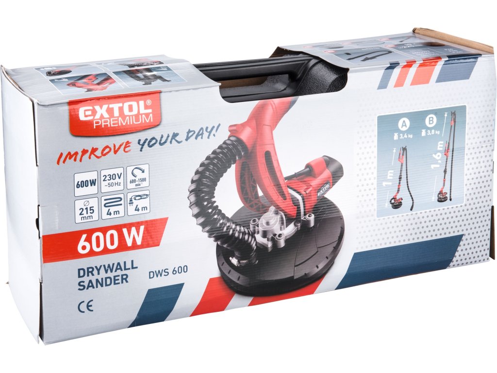 EXTOL PREMIUM bruska na sádrokarton 8894210 je spolehlivý a výkonný nástroj, který kombinuje komfort, výkon a čistou práci. Je ideální pro každodenní použití i náročnější projekty, kde je potřeba efektivního broušení s minimem prachu.