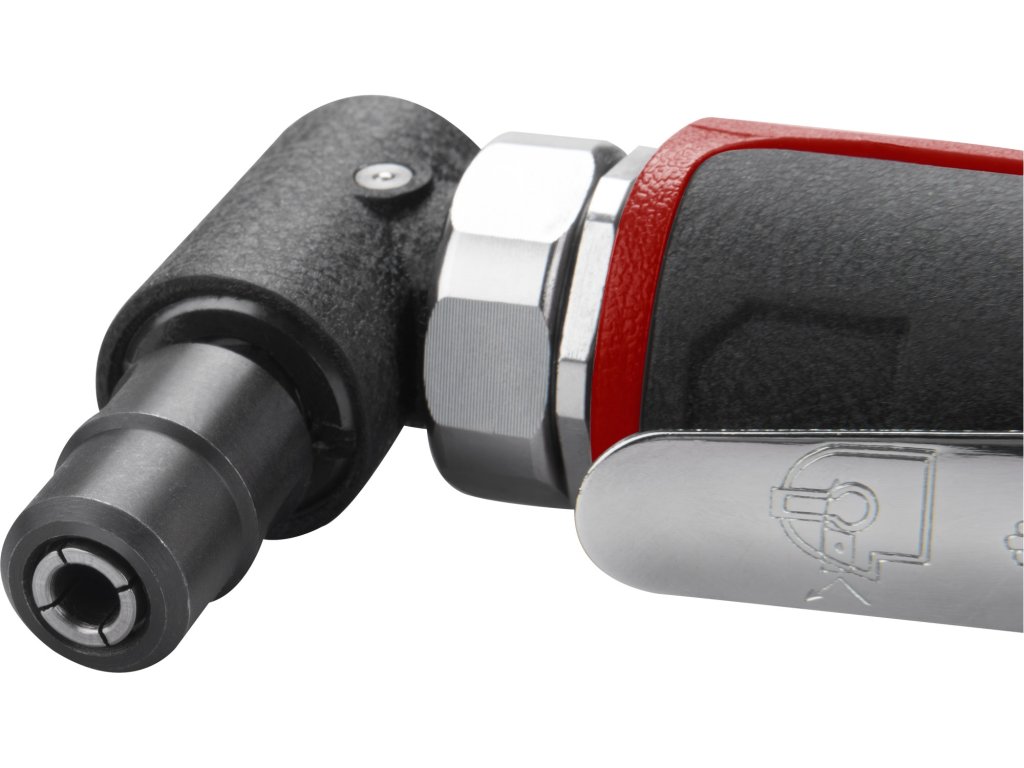 Pneumatická přímá bruska je určena k náročné práci při broušení svarů a špatně přístupných míst, ale také k jemnému broušení, odhrotování, frézování a gravírování. Krátké tělo brusky padne do ruky a pomáhá při práci v omezených prostorech. Hlava s kleštinou je otočené o 90°, což umožňuje výrazné zpříjemnění a zjednodušení práce v některých polohách, kdy můžete držet brusku v přirozené vodorovné poloze a nemusíte ji držet vertikálně. Nářadí umožňuje výměnu a montáž upínacích kleštin pro uchycení nástrojů s průměrem stopky 6 nebo 3mm.