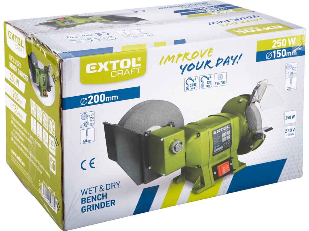 Středně velká stolní bruska vybavená pomaloběžným kotoučem pro brousící práce, při nichž je důležité předejít přehřátí materiálu.