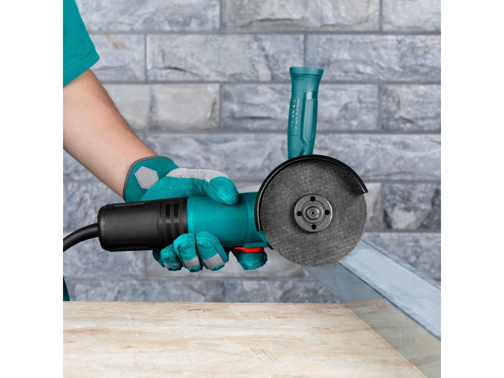 TOTAL úhlová bruska 115 mm, 750 W je spolehlivý a všestranný pomocník pro různé řezací a brusné aplikace. Je ideální pro kutily i pro základní profesionální použití, kde je požadován stabilní výkon a pohodlné ovládání.