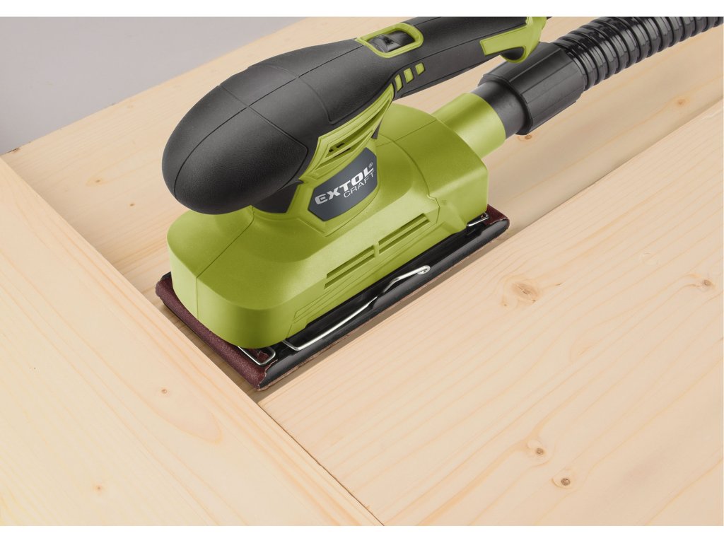 Dvouruční bruska určena pro broušení dřeva a dřevěných materiálů, kovů a zabroušení poškozených míst povrchové úpravy, např. barvy a laku, dále tmelů apod. bez použití vody. Broušení je prováděno mikrojemnými vibracemi brusné základny kmitající o vysoké frekvenci. Bruska je vhodná pro broušení v místech s pravým úhlem, např. v rozích podlah a k finálnímu zbroušení jemných defektů na površích před nanášením povrchové úpravy. Bruska není určena k broušení sádrokartonu a stavebních materiálů.