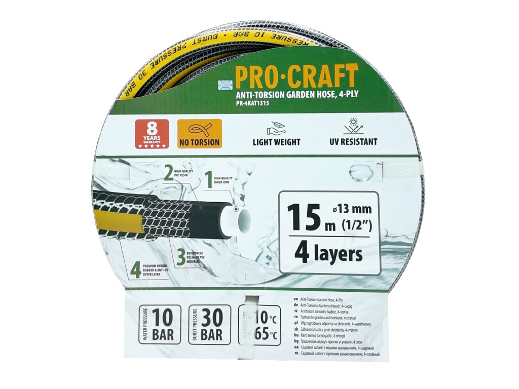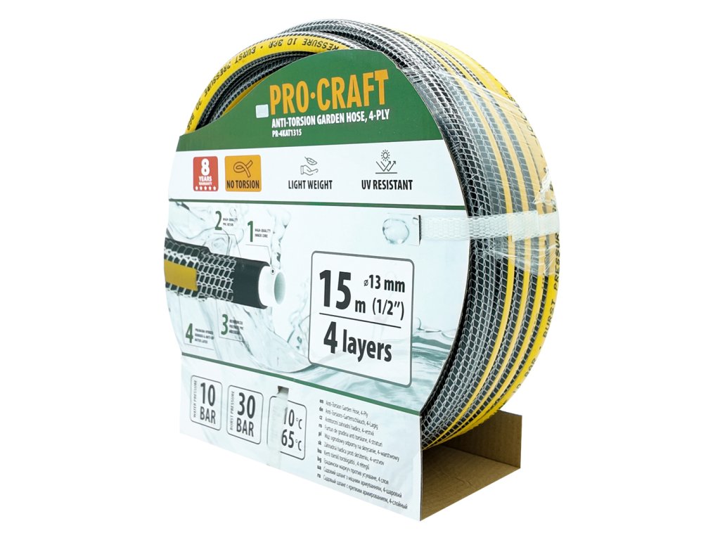 Černo-žlutá zahradní hadicí Procraft PR-4KAT1315 je zkrátka spolehlivým a odolným pomocníkem pro každého zahrádkáře, který ocení dlouhou životnost a bezstarostné používání.