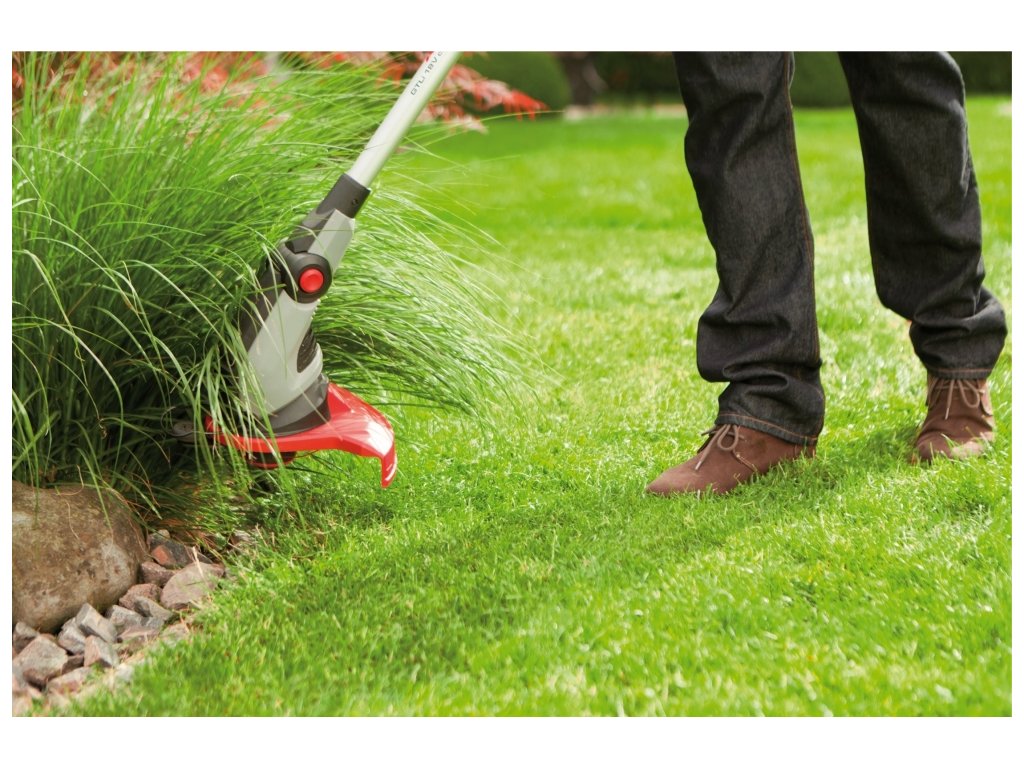 Pracovní záběr činí 30 cm, což je velmi dobrá hodnota pro rychlé a efektivní dosekávání menších až středně velkých ploch. Širší záběr přispívá k rychlejší práci a zároveň zachovává dostatečnou přesnost při sečení kolem záhonů, keřů, obrubníků nebo plotů. Strunová sekačka tak není určena pouze pro dokončovací práce po hlavním sečení, ale zvládne efektivně udržovat i menší travnaté plochy samostatně.
