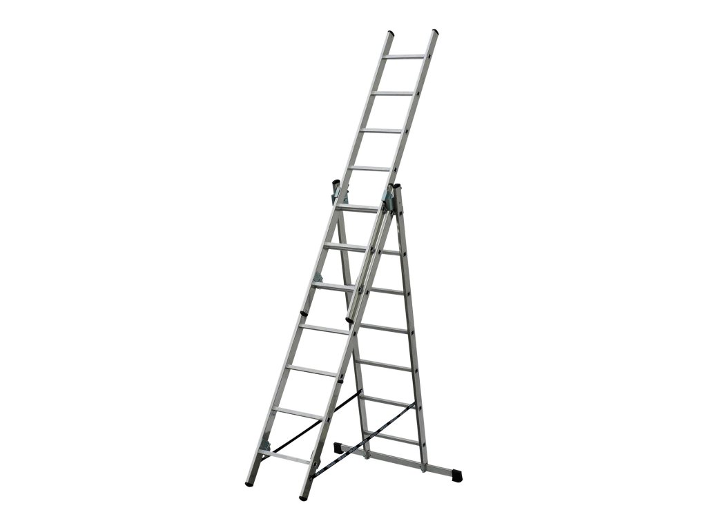 Trojdílný hlinikový žebřík, který lze použít jako jednoduchý, dvojitý nebo trojitý výsuvný i jako samostatně stojící. Ocelové závěsy a bezpečnostní pojistky zajišťují jednoduché a bezpečné vysunutí. Protiskluzové patky poskytují maximální stabilitu při práci. Díky možnosti složení a variabilnímu nastavení je tento žebřík ideální pro široké spektrum činností – od domácího použití po profesionální práci ve výškách.