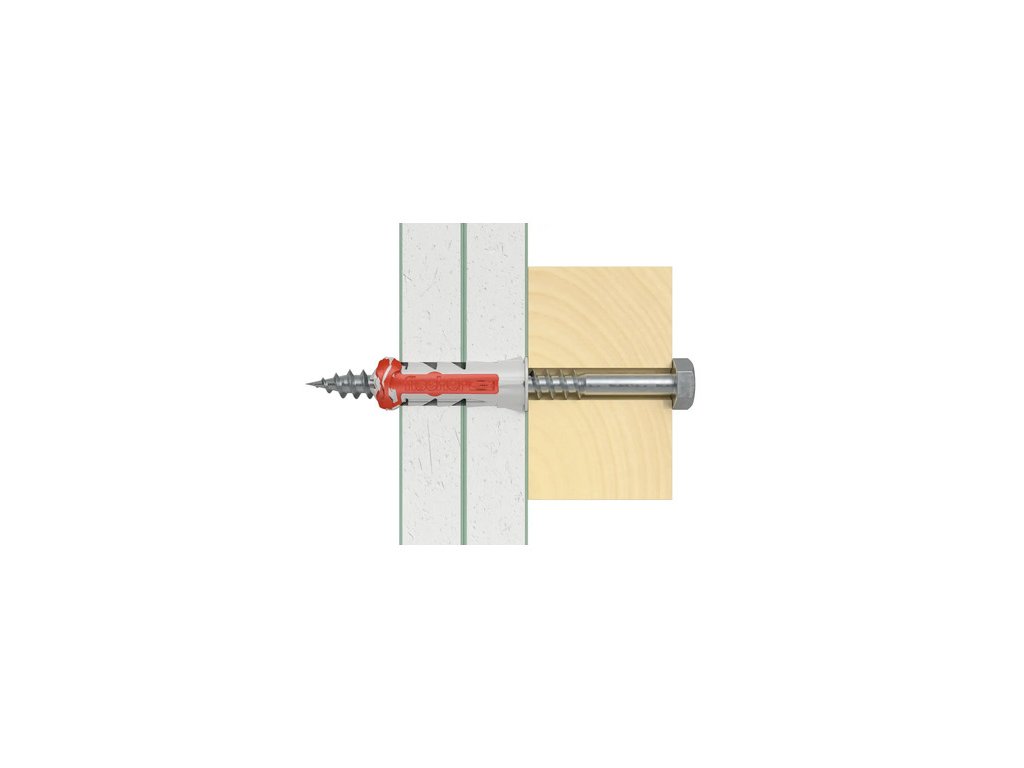 Ideální pro uchycení lehkých prvků jako jsou závěsné lišty, osvětlovací tělesa, elektroinstalace, lehké police, vypínače nebo obrázky. Funguje ve všech běžných stavebních materiálech: beton, plná cihla, sádrokarton, pórobeton i duté tvárnice.