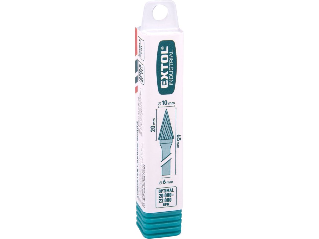 fréza karbidová, konická-jehlan, pr.10x20mm/stopka 6mm,sek střední (double-cut)