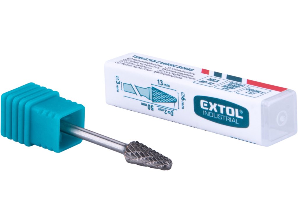 › Nástroje › Nástroje do kovu › Kolíkové frézy, odstraňovače otřepů, čepele, odrotovače › fréza karbidová, konická zakulacená, ⌀6x13mm, ⌀stopky 3mm, sek střední (double-cut)