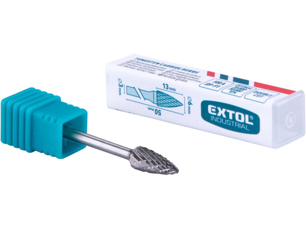 › Nástroje › Nástroje do kovu › Kolíkové frézy, odstraňovače otřepů, čepele, odrotovače › fréza karbidová, ostrý oblouk, ⌀6x13mm, ⌀stopky 3mm, sek střední (double-cut)