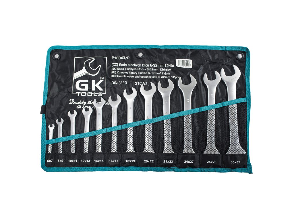 Sada plochých maticových klíčů v textilním obalu.Norma -DIN 3110 Materiál- 31CrV3
