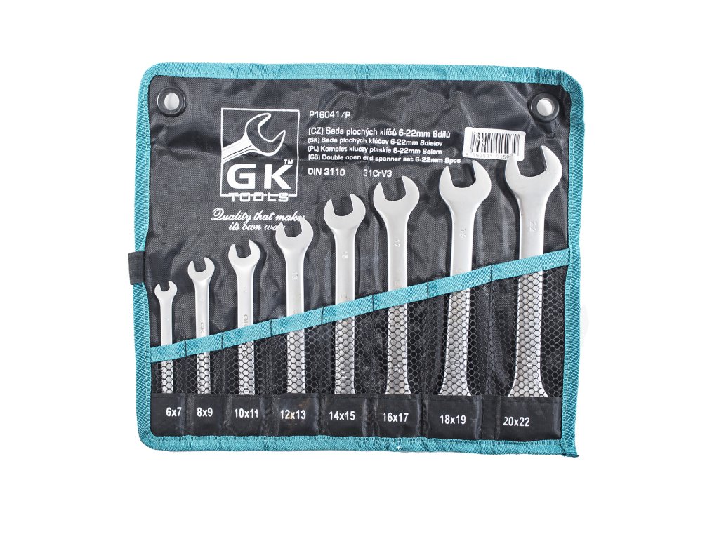 › Dílna › Klíče › Sady klíčů › Ploché › GK TOOLS Sada plochých klíčů, matné | 6-22 mm, 8 dílů, textilní obal