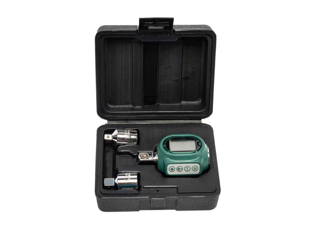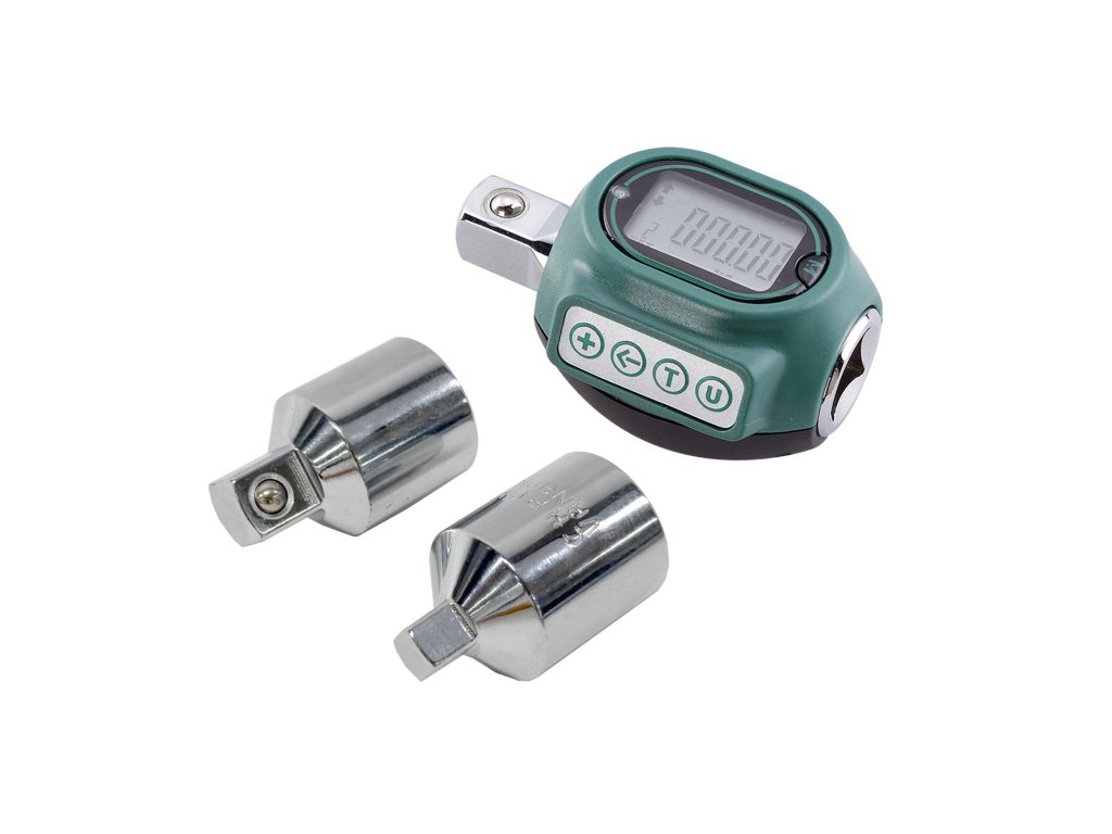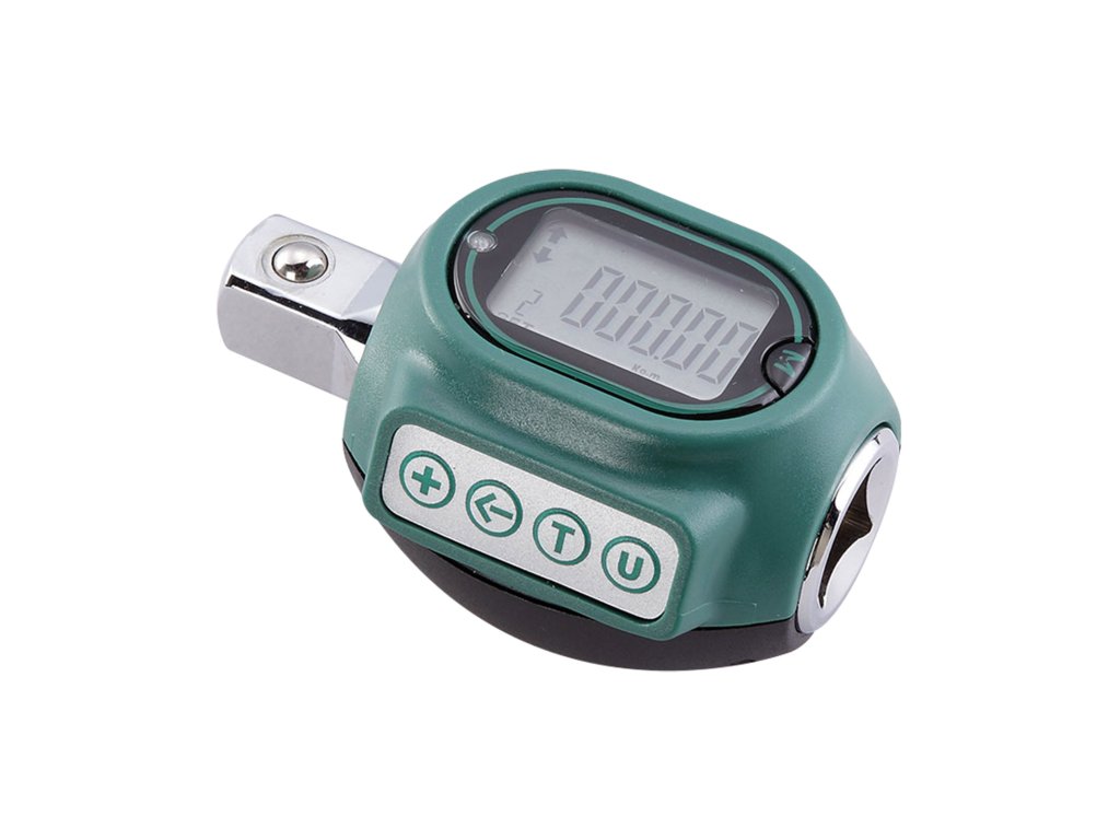 Digitální momentový adaptér na ráčnu nebo momentový klíč pro nastavení nebo odečet přesné hodnoty momentu. Na dosažení nastaveného momentu Vás upozorní zvukový a LED indikátor a ukazatel požadovaného momentu v procentech. Otočný mechanismus pro snadný odečet hodnot z displeje. Indikátor stavu baterie.