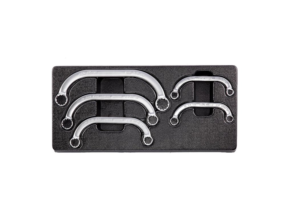 HA021-1 | Sada očkových zahnutých klíčů 5 dílů - matné, plastové plato |