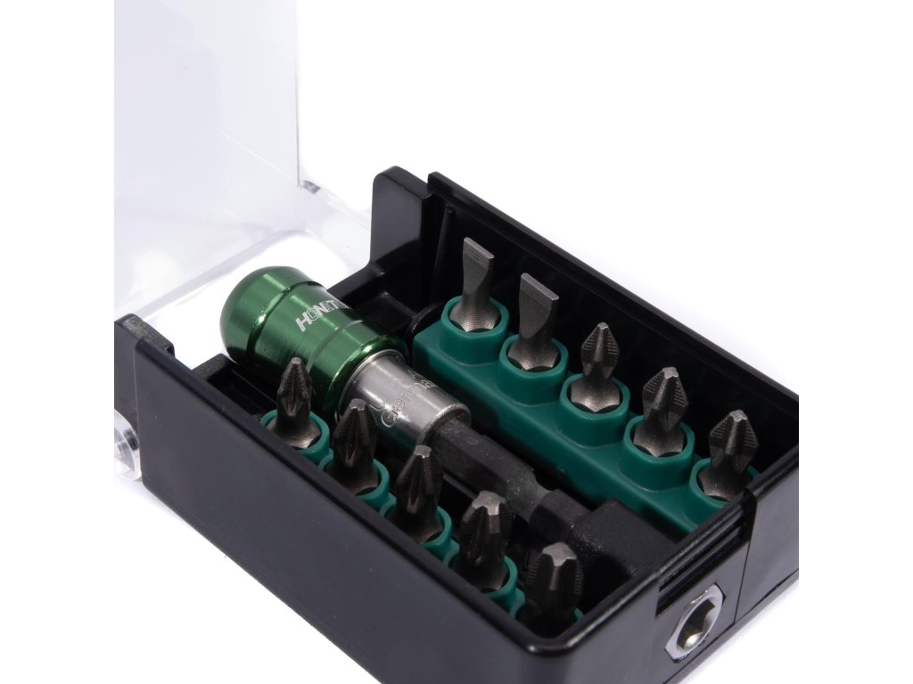Vysoká přesnost zpracování, přesně sedí ve šroubu. Snížení prokluzu a Cam-out. MATERIÁLY: Vysoce kvalitní ocel s technologií RSC. Kalená a temperovaná na maximální kapacitu. POVRCH: Bity poskytují dvě různé povrchové úpravy pro klienty. Pískování, povlak TiN.