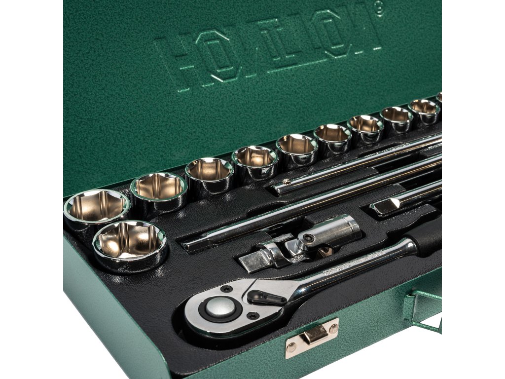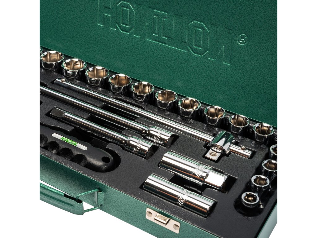 Kompletní sada hlavic 1/2" s veškerým příslušenstvím pro profesionální i domácí použití. Sada je dodávána s praktickým kovovým boxem pro bezpečné a přehledné uskladnění.