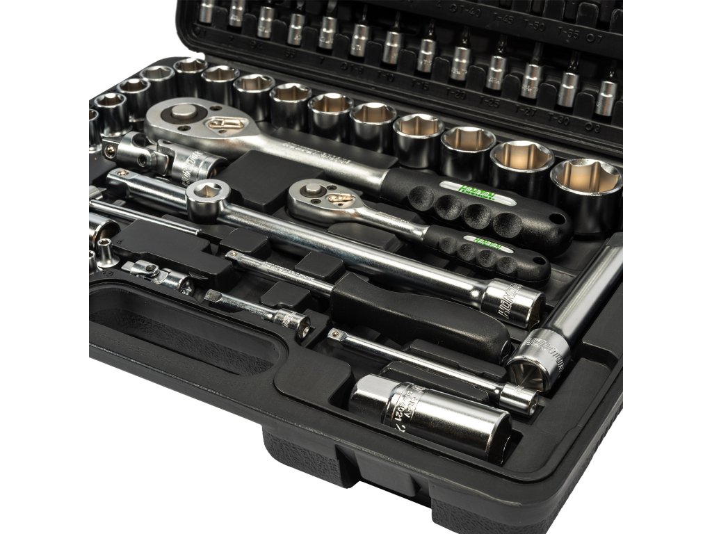 Profesionální sada nástrčných hlavic Honiton obsahující 94 dílů, vhodná pro dílnu, servis i domácí použití. Vše uloženo v odolném plastovém boxu pro přehledné a bezpečné uskladnění.