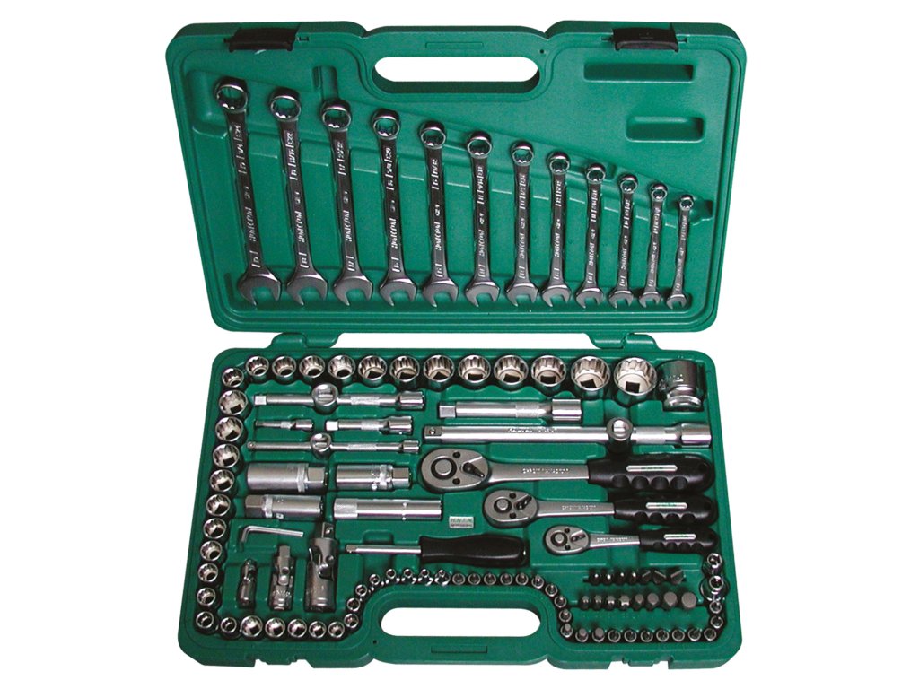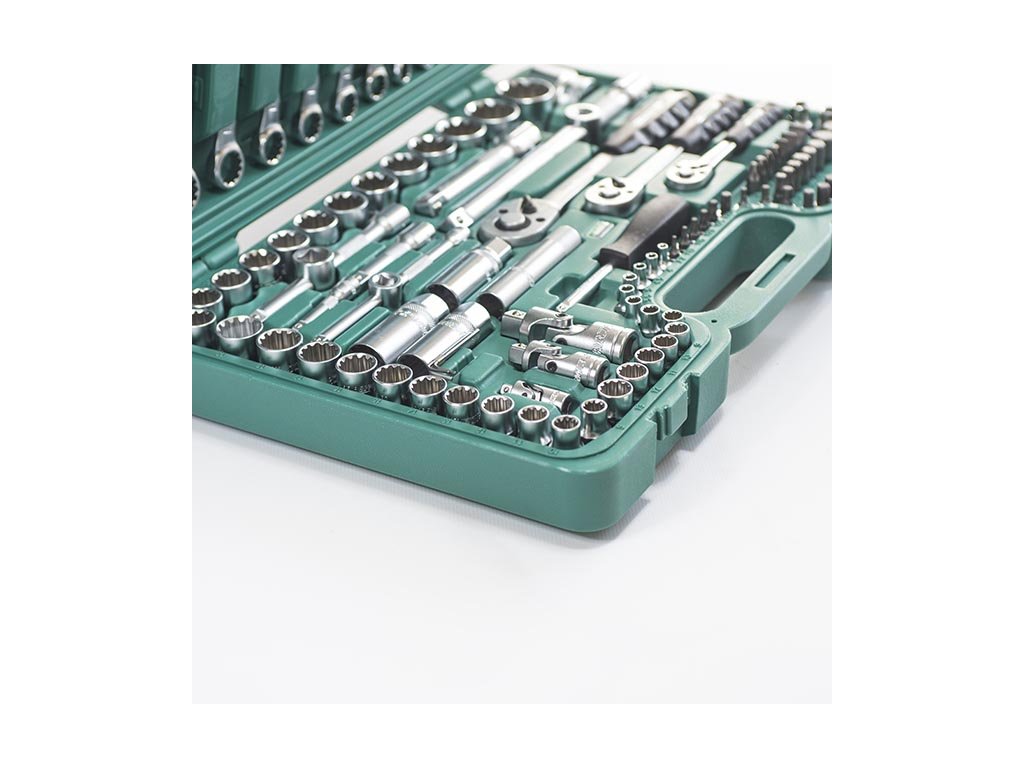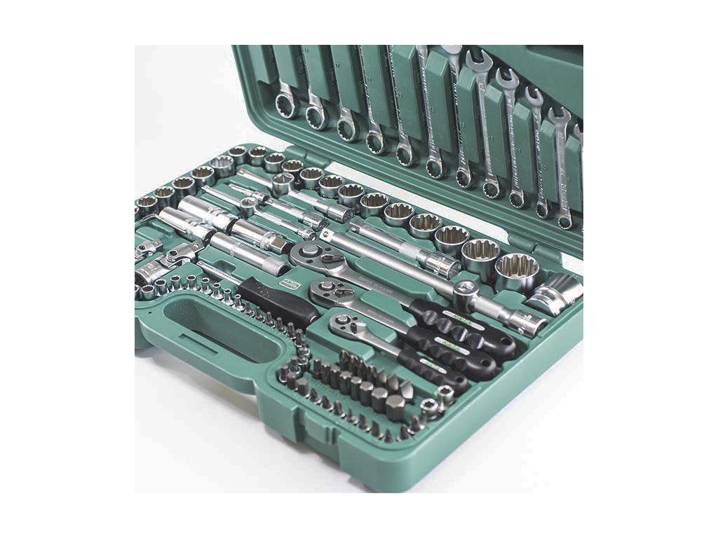 Rozsáhlá sada pro autoservis, dílnu i domácí použití. Vyrobeno z kvalitní chrom-vanadiové oceli, uloženo v přehledném plastovém kufru.