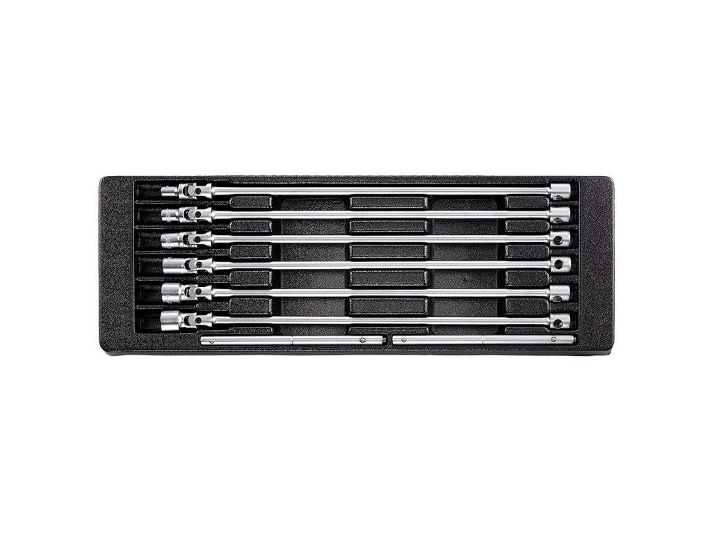 › Dílna › Montážní vozíky na nářadí › Příslušenství pro montážní vozíky › HONITON Sada hlavic na prodloužené T-rukojeti 8 dílů | plastové plato E