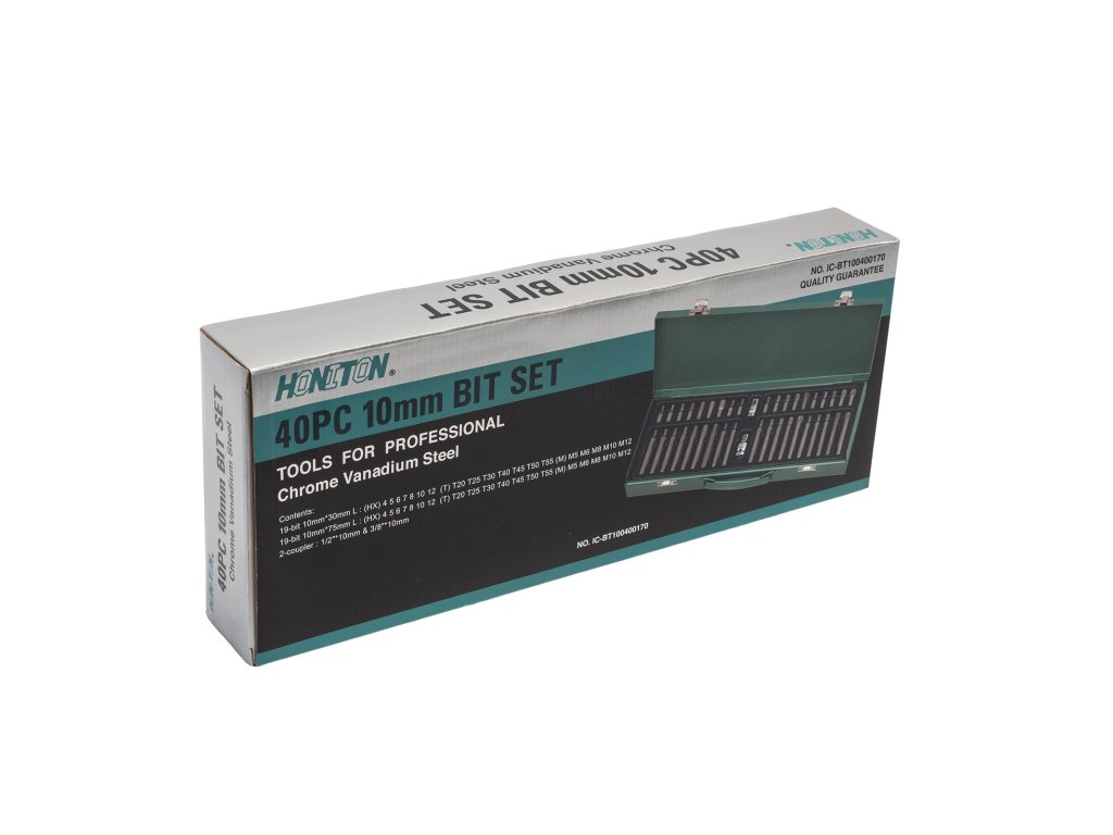 Kompletní sada 40 nástavců je určena pro profesionální i domácí použití. Obsahuje různé typy a velikosti bitů a hlavic pro maximální flexibilitu při práci s šrouby a šroubovými spoji.