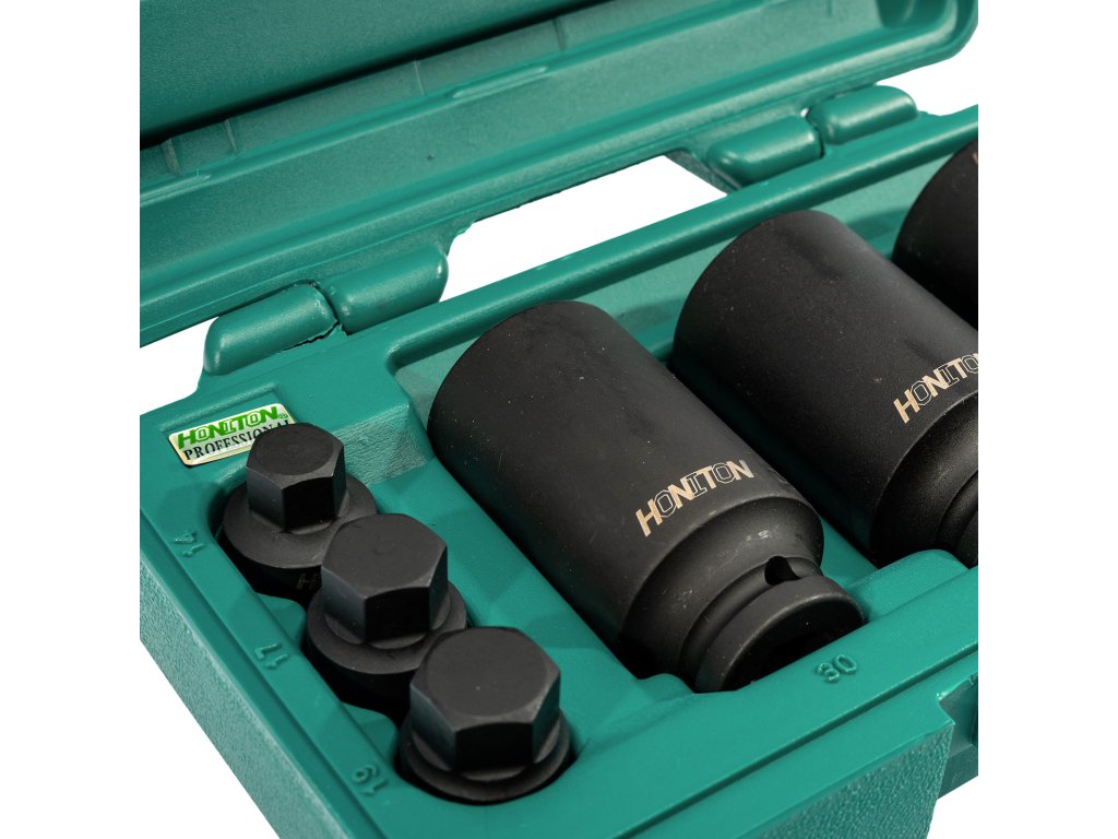Profesionální sada průmyslových hlavic Honiton obsahující 6 dílů, vhodná pro náročné dílny, servisy a průmyslové použití. Hlavice jsou vyrobeny z kvalitní chrom-vanadiové oceli a uložené v odolném plastovém boxu pro přehledné a bezpečné uskladnění.