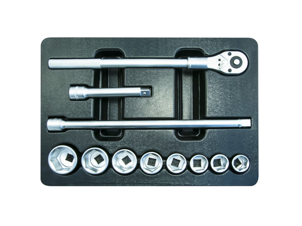 › Dílna › Montážní vozíky na nářadí › Příslušenství pro montážní vozíky › HONITON Sada šestihranných hlavic 3/4” 11 dílů | plastové plato D