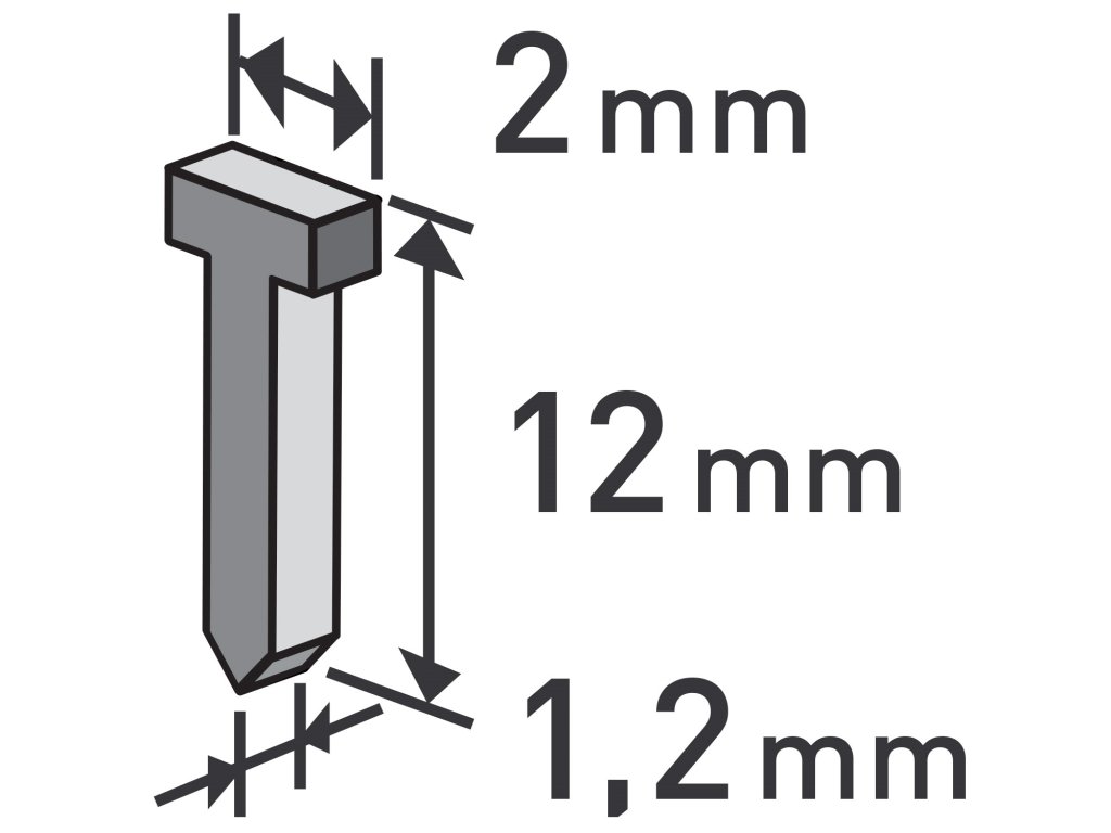 › Dílna › Nýtovací kleště, sponkovačky › Sponkovačky › Sponky › hřebíky, balení 1000ks, 12mm, 2,0x0,52x1,2mm
