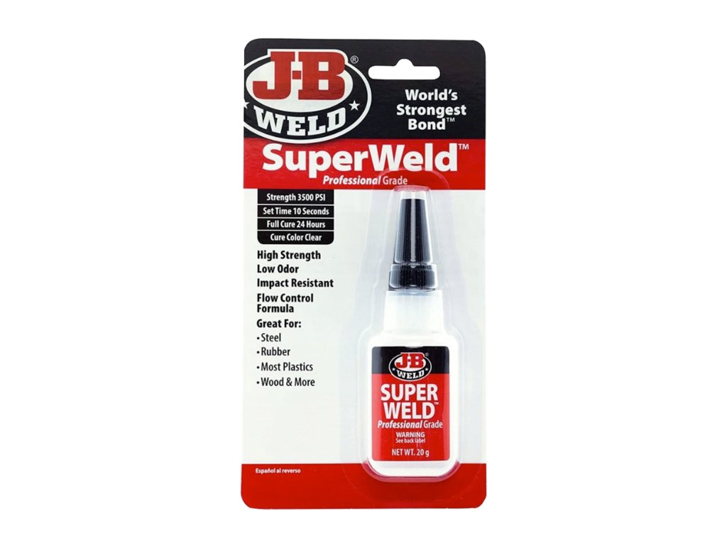 Lepidlo SuperWeld je speciálně vyvinuté kyanoakrylátové superlepidlo, které poskytuje velmi silný a okamžitý spoj při lepení různorodých materiálů. Lepidlo tuhne do 10-ti sekund a do finální tuhosti spoj vytvrdne do 24 hodin. Vteřinové lepidlo SuperWeld™ vytvrzuje do pevnosti 3500 PSI (=246 kg/cm2 = 24,13 Mpa).
