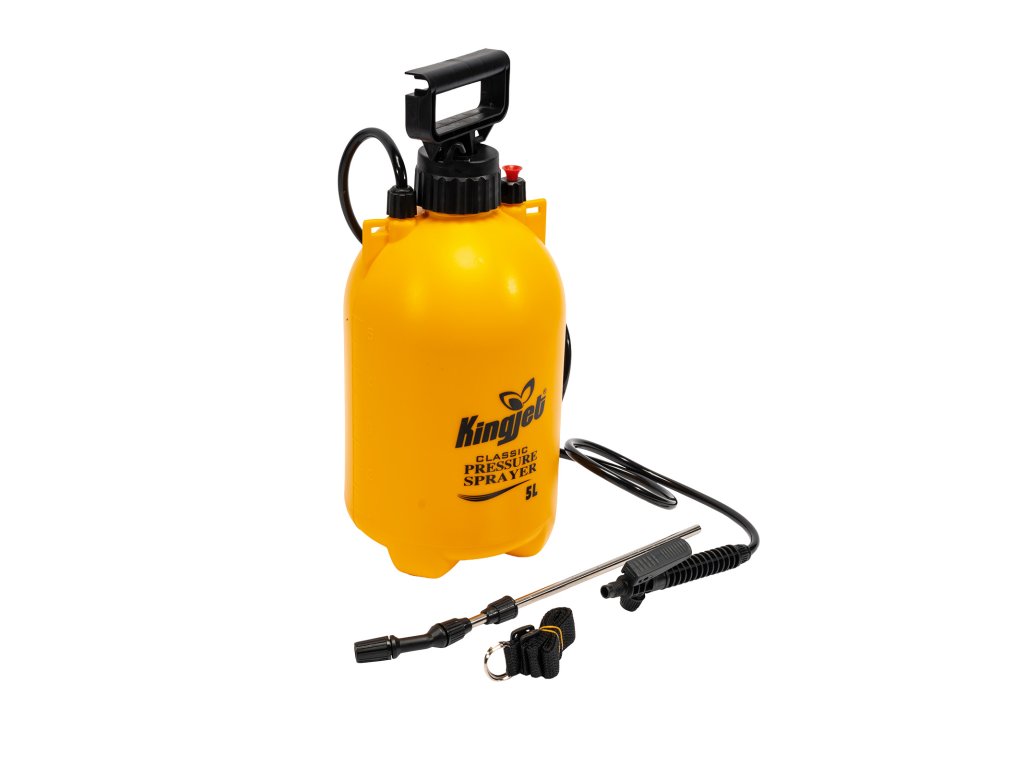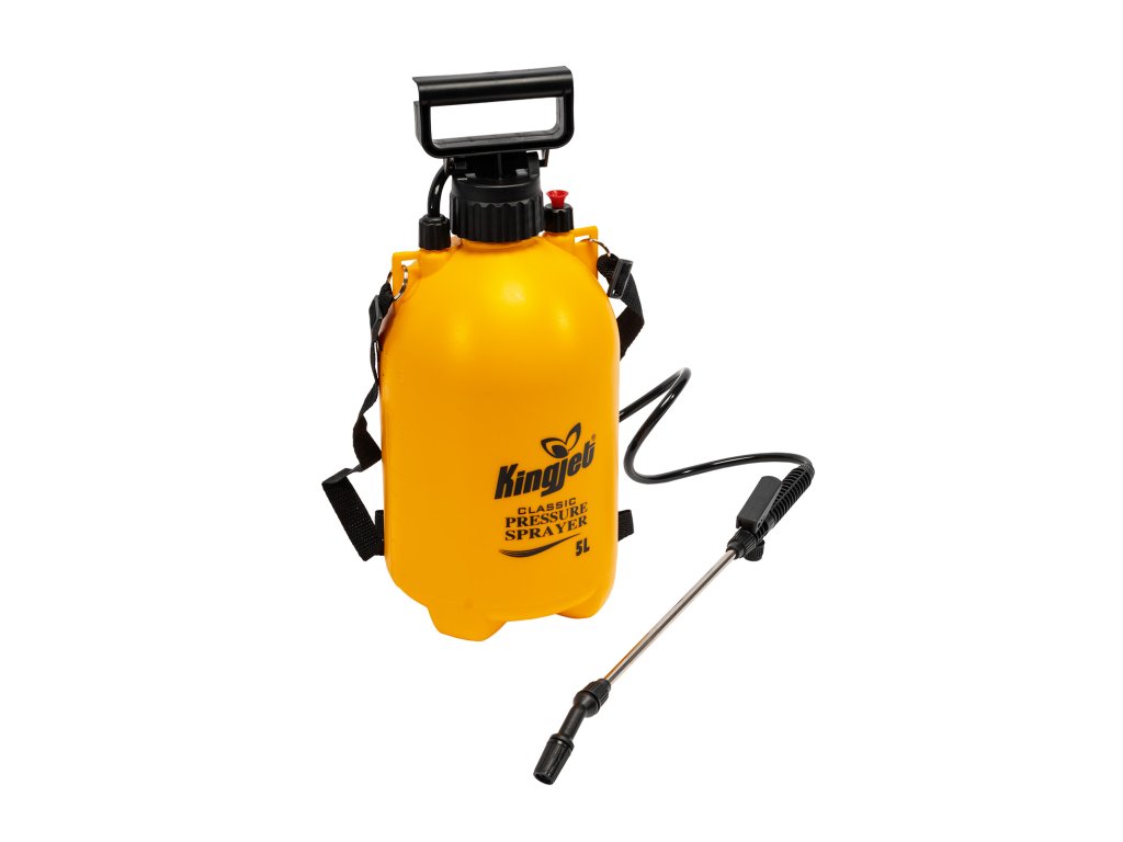 Praktický ruční postřikovač s objemem 5 litrů, určený pro aplikaci zahradních postřiků, hnojiv nebo ochranných prostředků. Postřikovač je vybaven bezpečnostním ventilem, který zajišťuje bezpečný provoz při tlaku až 2,5 bar. Nastavitelná tryska umožňuje přesné nastavení spreje od jemného mlžení po silný proud a nerezový nástavec zaručuje dlouhou životnost a odolnost vůči chemikáliím.