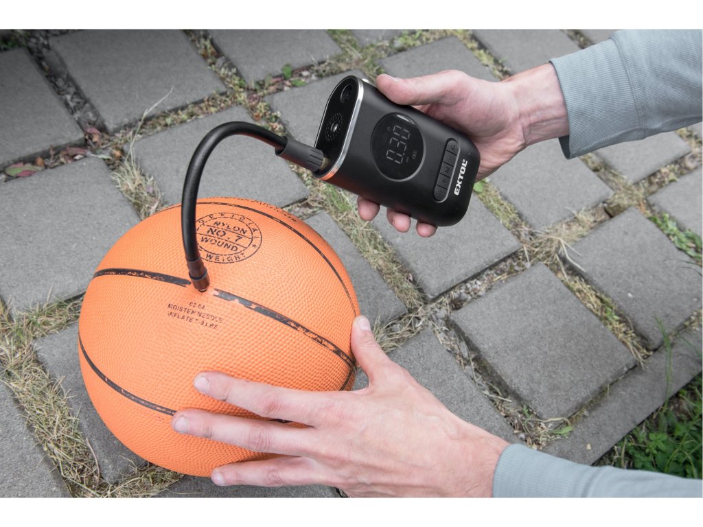 Nabíjecí cestovní kompresor s podsvíceným displejem je určen ke kontrole a nafukování pneumatik bicyklů, motorek a osobních automobilů na předepsaný tlak nebo k nafouknutí sportovních míčů, lehátek, matrací apod. Obsluha je velmi jednoduchá – na kompresoru nastavíte požadovaný tlak nebo zvolíte některou z přednastavených hodnot, spustíte přístroj a vyčkáte do automatického vypnutí. Kompresor má rozměr 13,5×8,5×5cm a hmotnost 380g a lze jej tedy snadno přibalit s sebou na cesty. Podsvícený displej a LED svítidlo, které lze zapnout samostatně a nezávisle na kompresoru, usnadňují používání kompresoru ve tmě. Pokud ho nepoužíváte, kompresor se sám po jedné minutě vypne. S USB-C konektorem jej lze nabít v klasické nabíječce (230V) nebo autonabíječce (12V). Díky Li-ion technologii je možné akumulátory kdykoliv dobíjet, aniž by se tím snižovala jejich kapacita. Li-ion akumulátor ztrácí energii vlivem samovybíjení velmi pomalu a vydrží dlouho nabitý a připravený k použití.