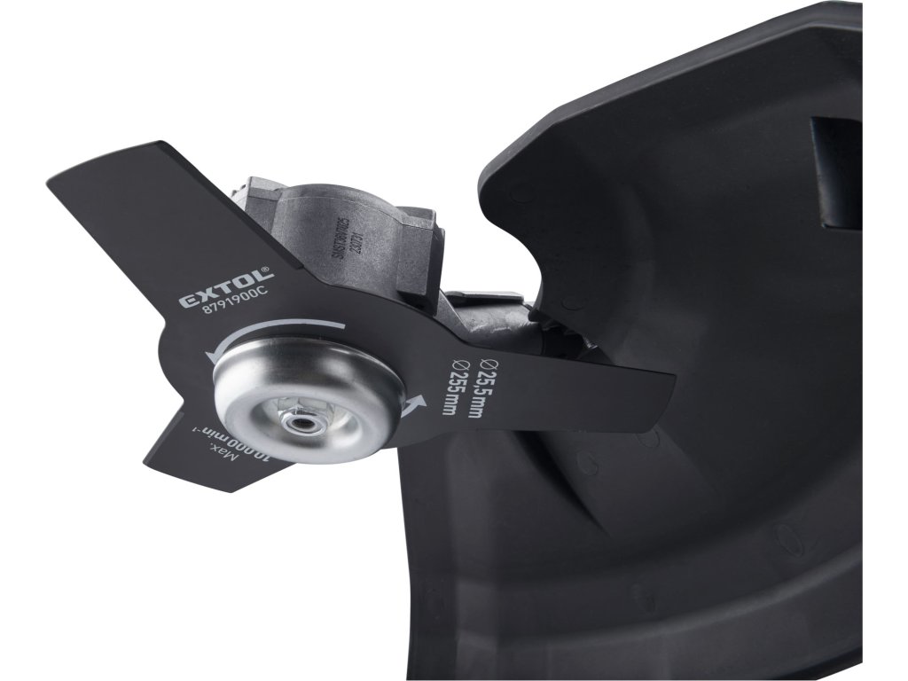 Silný aku křovinořez určený k sekání vysoké trávy nebo suché trávy, vysokých kopřiv a keřů a podrostu s průměrem kmene až 4cm s pomocí ocelového žacího nože nebo k sekání nižší trávy pomocí žací struny. Pro snadnou manipulaci při sekání má křovinořez ergonomicky tvarované rukojeti ve tvaru cyklořídítek a ramenní popruh, který přenáší většinu hmotnosti na tělo a ruce používáte jen pro jemnou manipulaci při sekání. Křovinořez je poháněn nejmodernějším „brushless” motorem. Tento nový typ motoru má vyšší životnost, je výkonnější a má menší spotřebu el. energie než klasické motory s uhlíkovými kartáči. Díky malé velikosti a při zachování vysokého výkonu je možné motor umístit do hlavy sekačky a díky tomu je v dlouhé tyči sekačky jen kabel, což umožňuje výrazně snížit vibrace a zvýšit efektivitu motoru. Do stroje se vkládají dvě baterie SHARE20V, které společně umožňují motoru mít vysoký výkon i při zatížení. Při použití žací struny ji lze při práci prodloužit poklepem na zem. Na rukojeti je snadno přístupné tlačítko pro zapnutí a regulaci otáček ve 3 stupních: 3800/5000/6700 otáček/min. Dále jsou tam umístněné bezpečnostní tlačítka zabraňující náhodnému spuštění stroje při manipulaci. Pro snadnou přepravu lze křovinořez jednoduše bez nástroje “rozpůlit” pomocí jednoho šroubu. Pro běžnou práci dostačují dva 2Ah akumulátory, oba dva můžete najednou rychle nabít v rychlonabíječce za 35min, pro náročnější nebo delší práci doporučujeme větší akumulátory s kapacitou 4–8Ah. Akumulátory lze použít ve všech typech nářadí řady EXTOL SHARE20V. Díky použité Li-ion technologii je ho možné kdykoliv dobíjet, aniž by se tím snižovala jeho kapacita. Li-ion akumulátor ztrácí energii vlivem samovybíjení velmi pomalu a vydrží dlouho nabitý a připravený k použití.
