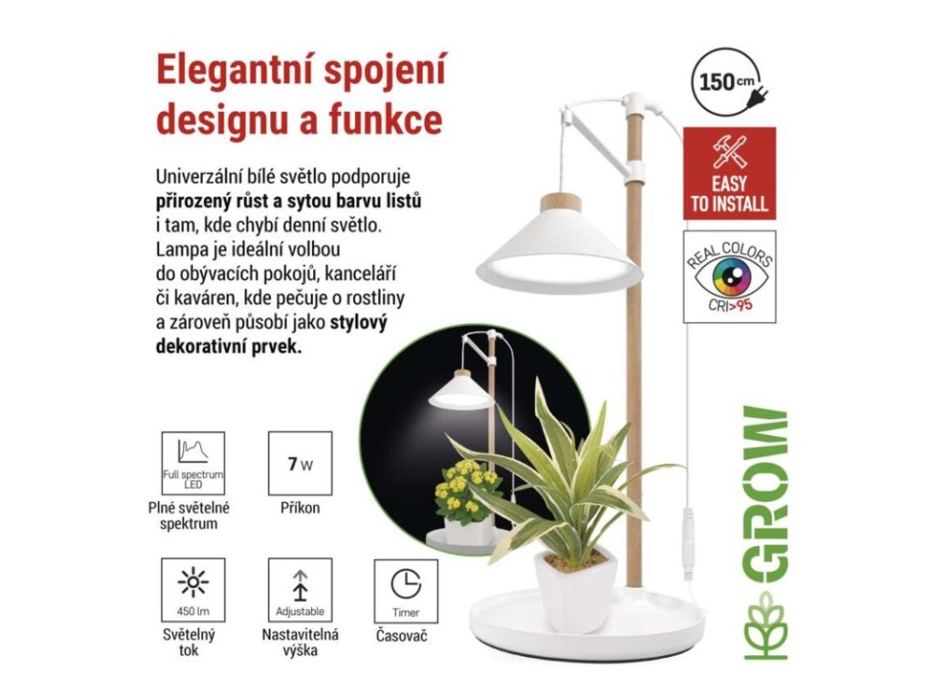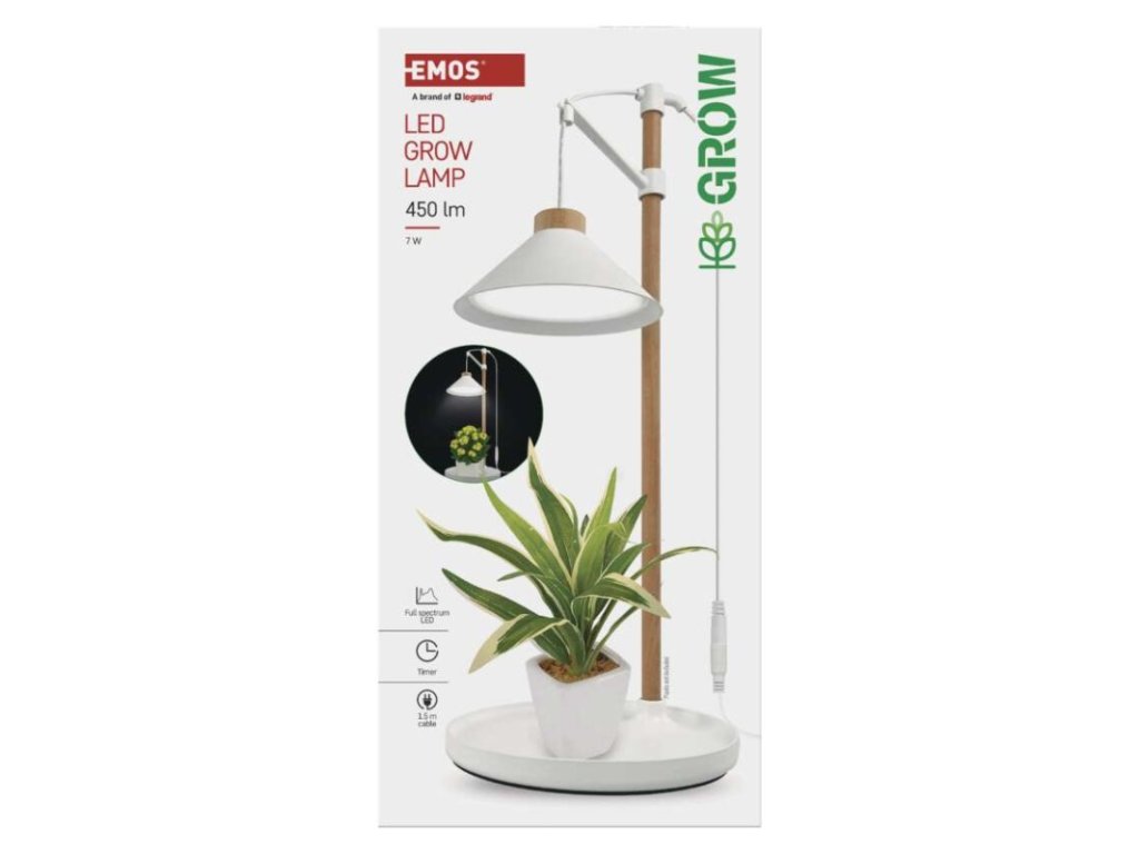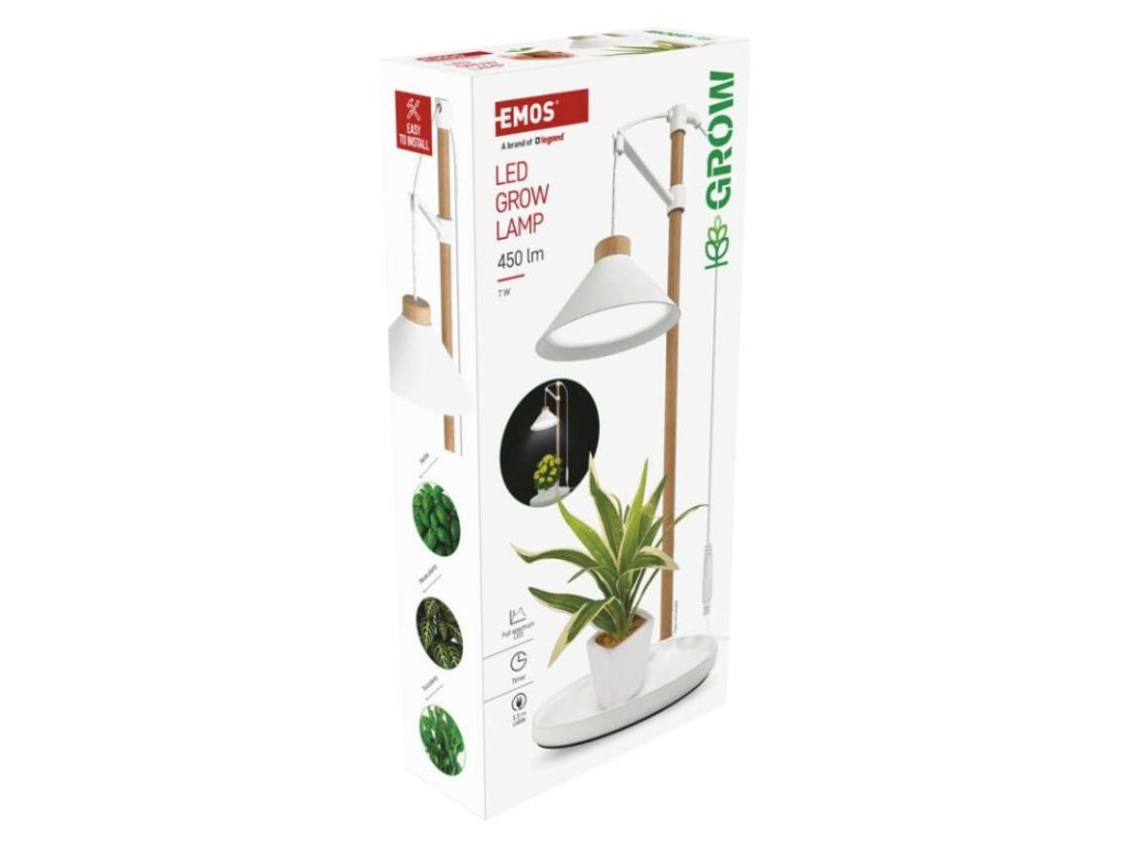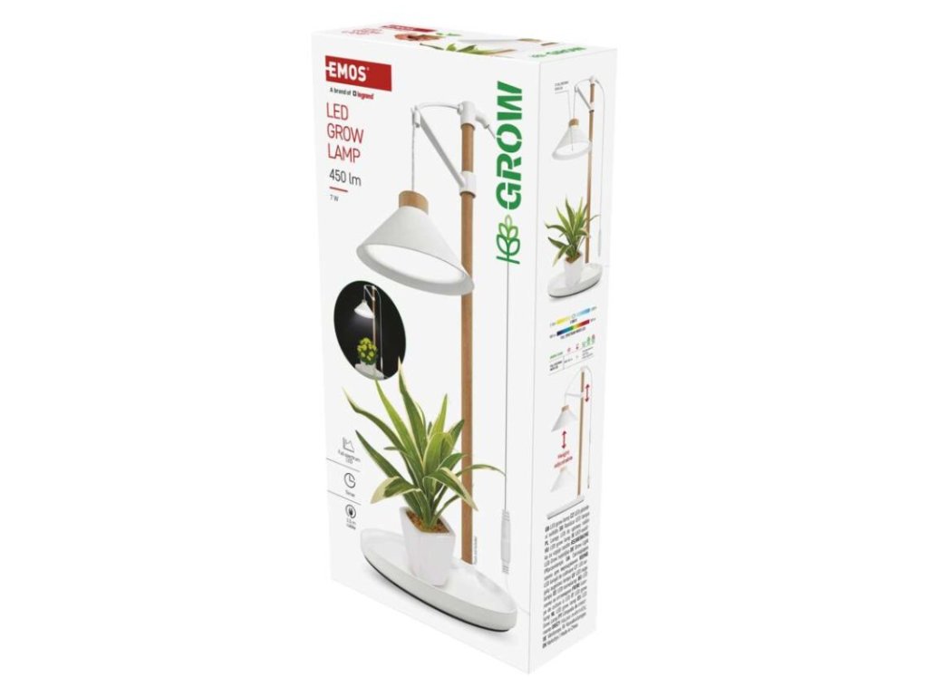EMOS LED Grow pěstební lampa 7 W s časovačem je navržena pro efektivní přisvětlování rostlin v domácím a kancelářském prostředí. Slouží jako doplňkový zdroj světla v místech, kde rostliny nemají dostatek přirozeného denního osvětlení, například na parapetech, v tmavších místnostech nebo během zimního období.