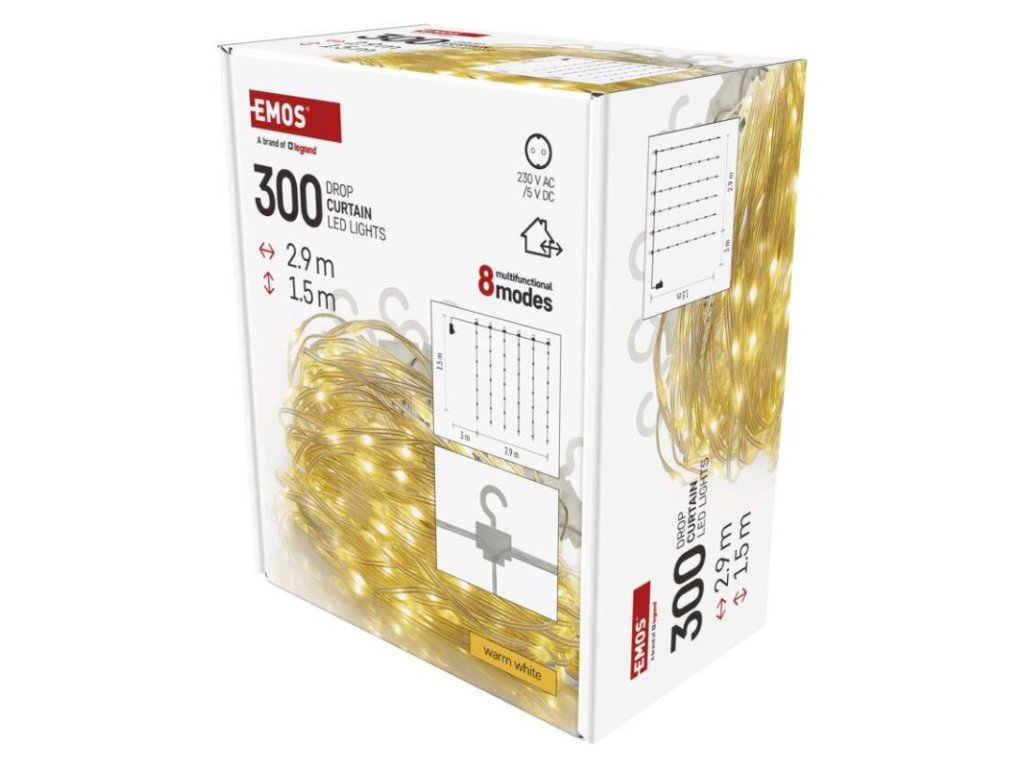 Vytvořte kouzelnou vánoční atmosféru s tímto LED vánočním drop řetězem – záclonou, který je ideální pro použití jak v interiéru, tak i exteriéru. Tento krásný světelný řetěz je vybaven teplou bílou barvou LED diod, která dodá vašim prostorům příjemnou a sváteční náladu.