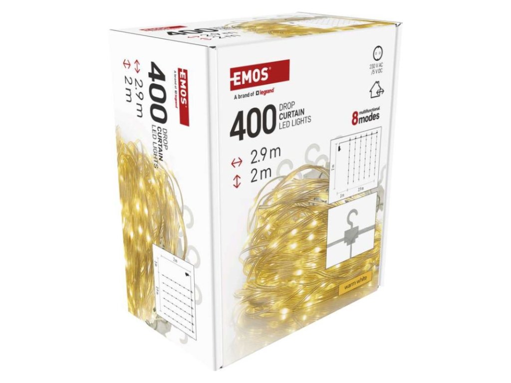 LED vánoční drop řetěz – záclona o rozměrech 2,9 × 2 m je ideální volbou pro ty, kteří hledají kvalitní, úsporné a efektní vánoční osvětlení. Vytvořte si pohádkovou atmosféru doma i venku a užijte si svátky naplno.