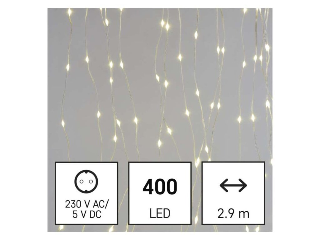 LED vánoční drop řetěz – záclona 2,9 × 2 m, teplá bílá, venkovní i vnitřní, s programy