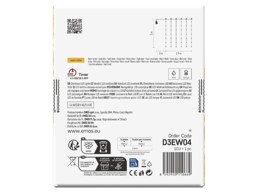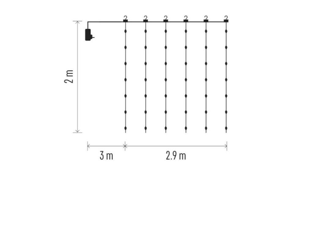 Vytvořte si doma nebo venku nádhernou vánoční atmosféru s tímto LED vánočním drop řetězem – záclonou. Světelná dekorace s rozměry 2,9 × 2 metry poskytuje dostatek světla pro výzdobu oken, pergol, balkonů či stěn. Díky teplé bílé barvě světla působí útulně a elegantně, a díky možnosti venkovního i vnitřního použití se stane univerzálním doplňkem každé vánoční výzdoby.
