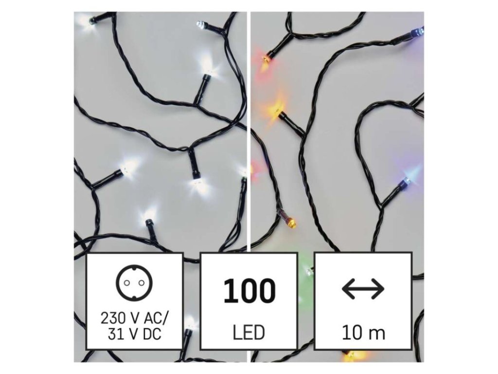 LED vánoční řetěz 2v1, 10 m, venkovní i vnitřní, studená bílá/multicolor, programy