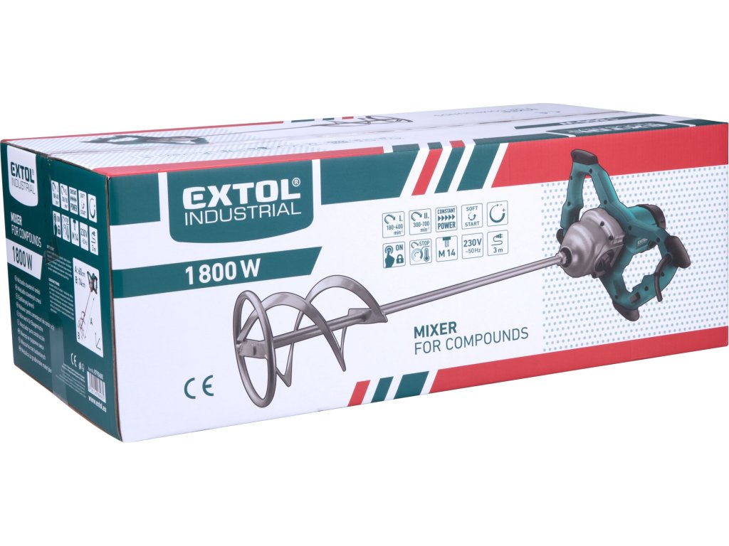 Toto silné míchadlo je určeno k rozmíchání stavebních hmot jako např. malty, omítky, lepidla, dále barev a laků. Míchadlo má silnou synchronizovanou převodovku, která lehce přepíná mezi dvěma rozsahy a regulátor rychlosti pro jemnější přizpůsobení otáček vzhledem k viskozitě míchané směsi. Elektronicky regulovaný start zabraňuje vystříknutí míchané hmoty a zvyšuje bezpečnost práce. Systém konstantních otáček udržuje stejné otáčky bez ohledu na zatížení stroje, což umožňuje rovnoměrné promíchání směsi. Pro zajištění delší životnosti je elektromotor je vybaven kontrolní elektronikou, která ho chrání před přetížením. Chytrý návrh madel dává míchadlu výbornou stabilitu při opření o zeď a při položení na zem udržuje motor co nejdále od země. Větrací otvory motoru jsou na bočních stranách, takže motor je lépe chráněný proti vniknutí nečistot nebo vody. Výměna uhlíků je velmi snadná díky tomu, že jsou přístupné zvenčí.