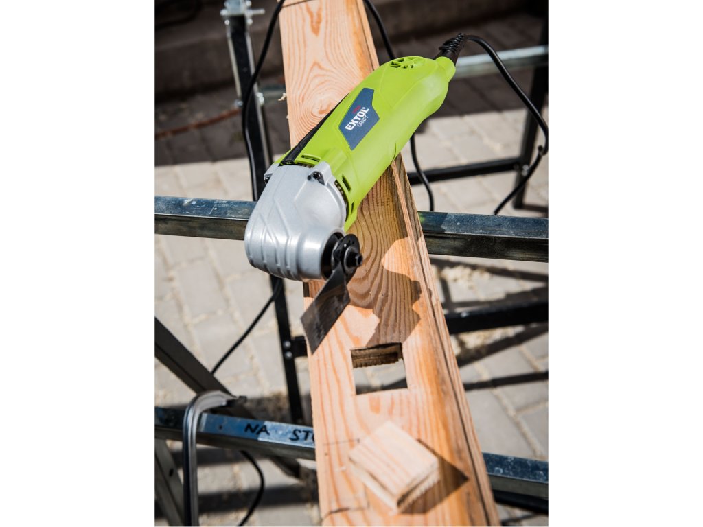 EXTOL CRAFT multifunkční bruska 300 W je elektrické oscilační nářadí navržené pro široké spektrum praktických úloh, jako je řezání dřevěných materiálů, umělých hmot, sádrokartonu a měkkých kovů, dále broušení, rašplování a škrabání povrchů. Díky kompaktní konstrukci a nízké hmotnosti je vhodná i pro práci v těžko dostupných místech, například v rozích nábytku, kolem lišt nebo při renovacích.
