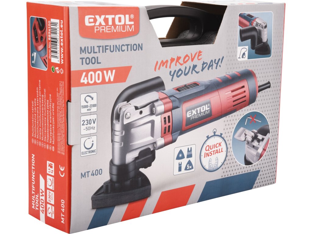 EXTOL PREMIUM multifunkční bruska 400 W s rychloupínacím systémem je všestranné, výkonné a pohodlné nářadí vhodné jak pro hobby kutily, tak pro řemeslníky, kteří potřebují spolehlivý a flexibilní nástroj pro každodenní úpravy materiálů.
