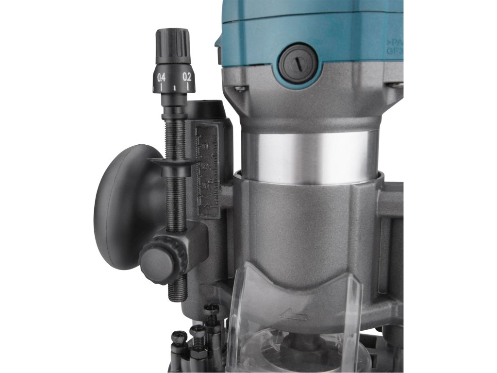Frézka je vybavena precizním systémem nastavení hloubky frézování, který umožňuje jemné i hrubší úpravy s vysokou opakovatelností. Stabilní základna zajišťuje přesné vedení nástroje po materiálu, minimalizuje vibrace a zvyšuje bezpečnost práce.