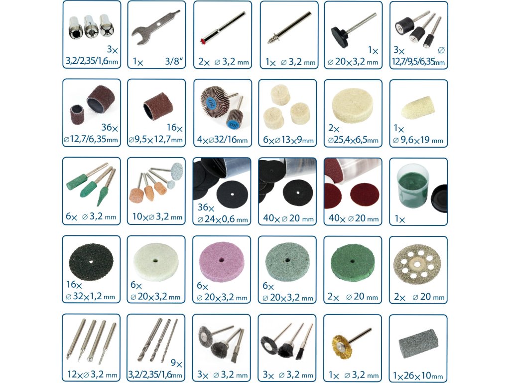 › Nástroje › Příslušenství pro přímou brusku › nástavce na přímou brusku, sada 276ks
